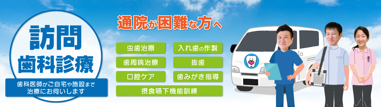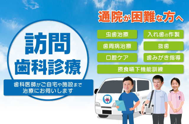 医院への通院が困難な方のご自宅・入所されている施設へ伺って歯科治療を行います。