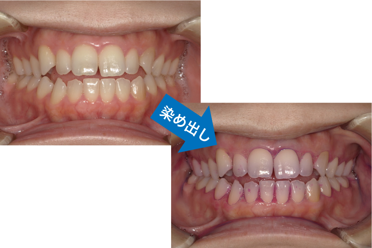 普段の磨き残しを調べることで、その後の歯ブラシ指導に役立てます。