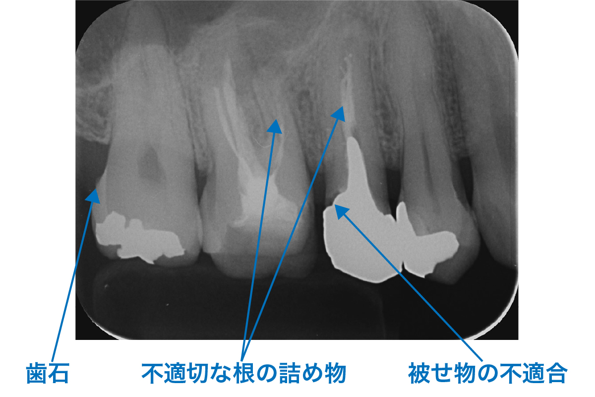 歯の周囲の骨の状態の観察、歯石の付着状態の観察はもちろん、虫歯や不適合のかぶせものなど、歯周病に悪影響を与える要因の発見にも有効です。